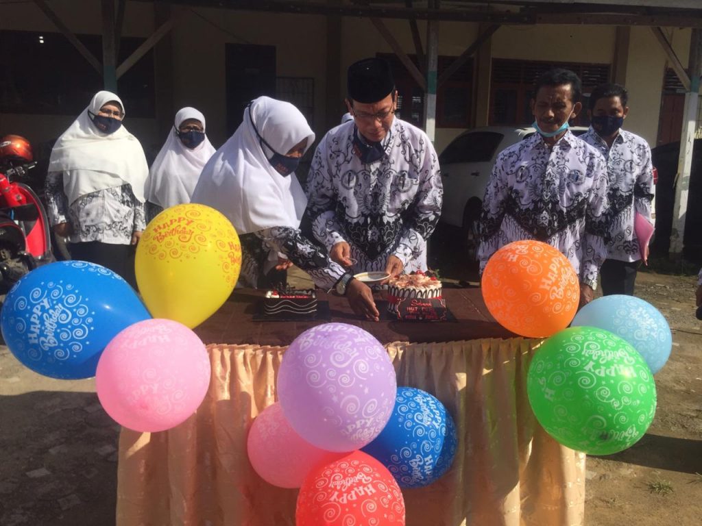 Pemotongan Kue Hari HUT PGRI ke 75 yang dilakukan oleh Kepala Madrasah